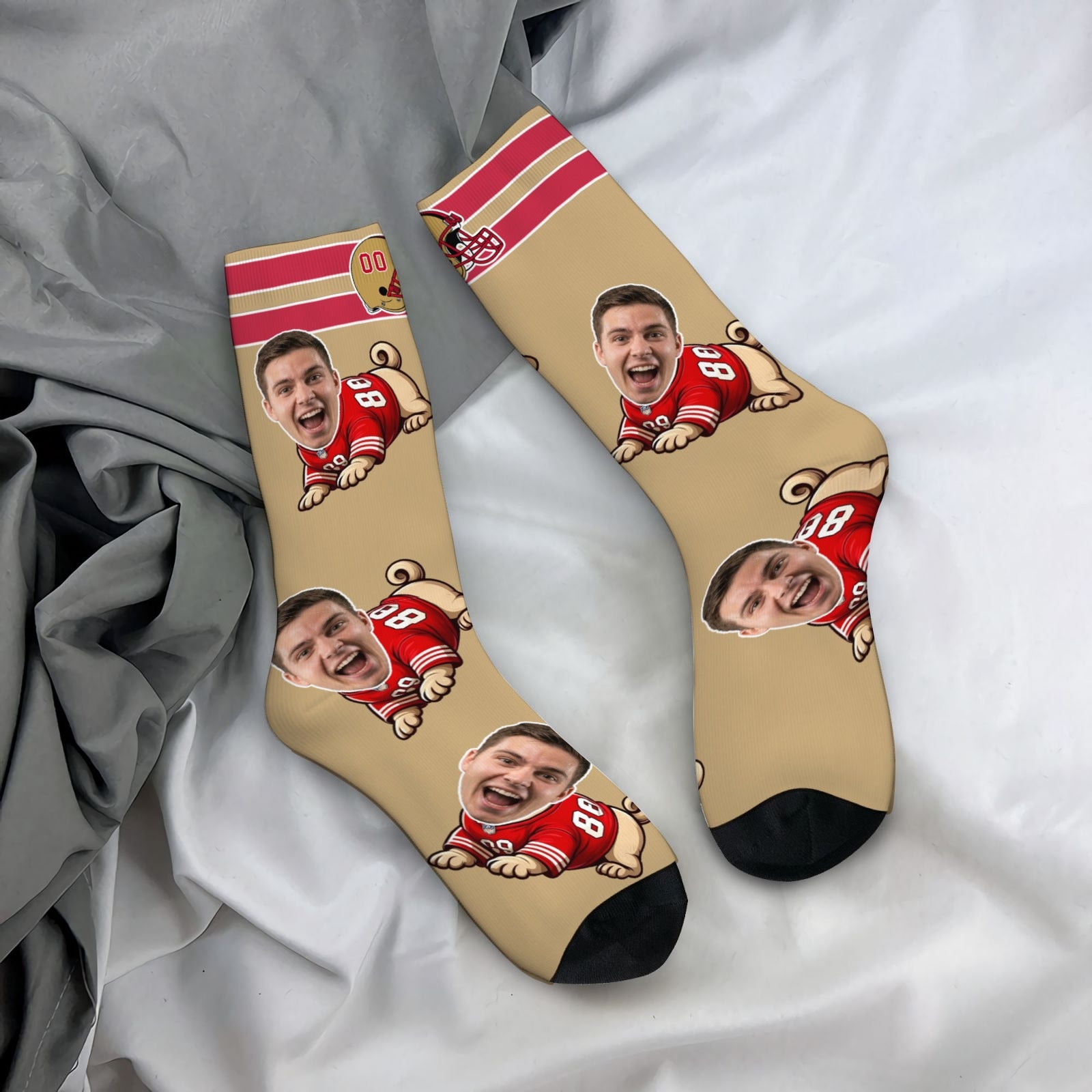 Whether you're watching the game, heading out, or relaxing, these San Francisco football-inspired custom socks blend comfort, personality, and classic gridiron style. Customize yours and show your San Francisco football spirit!