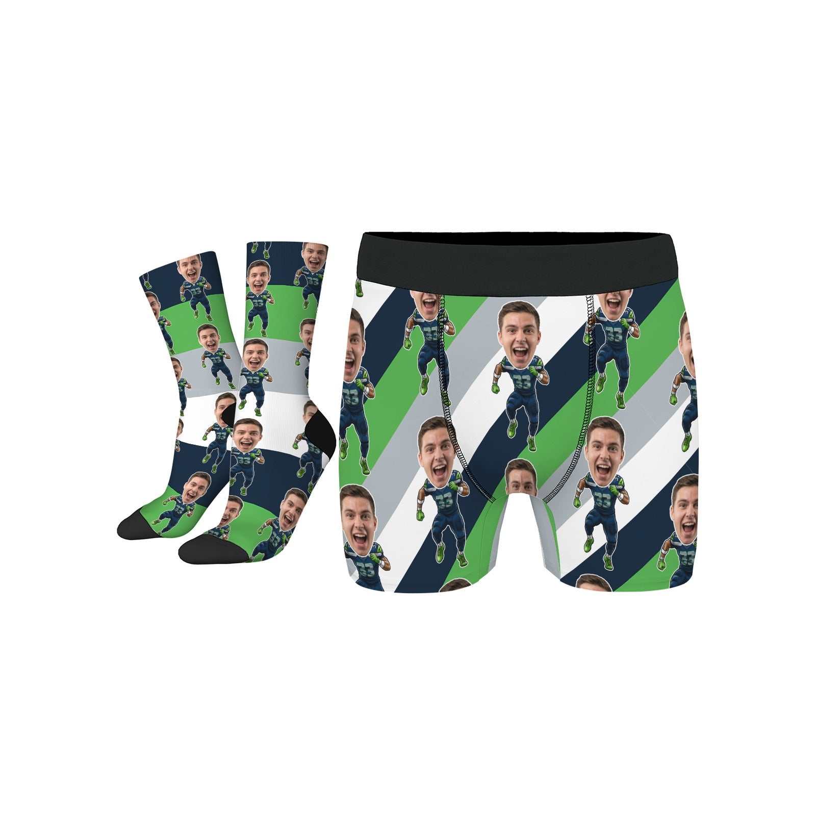 Custom Seattle Football Face Socks & Men's Underwear Set